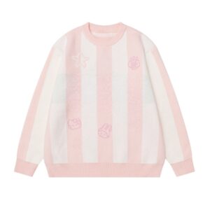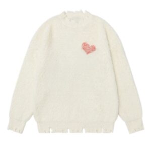 Apricot-Colored Loose-Fitting Ripped Knit Sweater