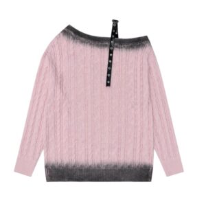 Off-Shoulder Leather Button Knit Hip-Hop Sweater